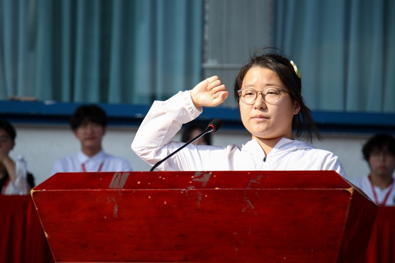 仪式结束后,裁判员代表何语林老师、运动员代表陶晶晶同学先后上台宣誓。