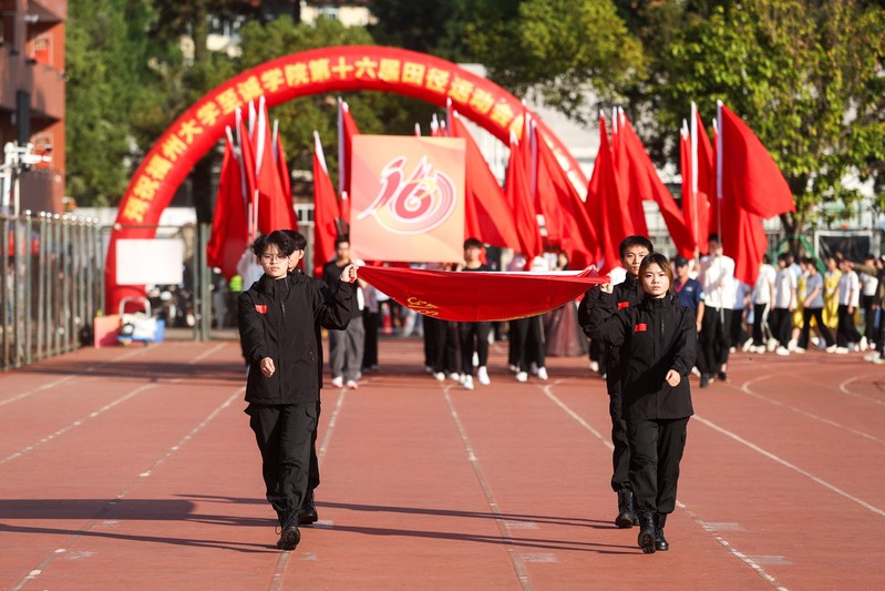 升国旗、奏唱国歌后,院党委副书记林文麟致开幕词。他回顾学院近年体育教育成果,提及健身俱乐部建设与“体教融合”实践,细数体育健儿们在全国、省级赛事斩获的特等奖、冠亚军等佳绩;强调本届运动会既是对体育教育成果的检阅,也是对校园活力与精神的展现,期望师生们以拼搏姿态锤炼意志、凝聚力量,携强健体魄与昂扬状态奋进,在学业与事业中追求卓越。