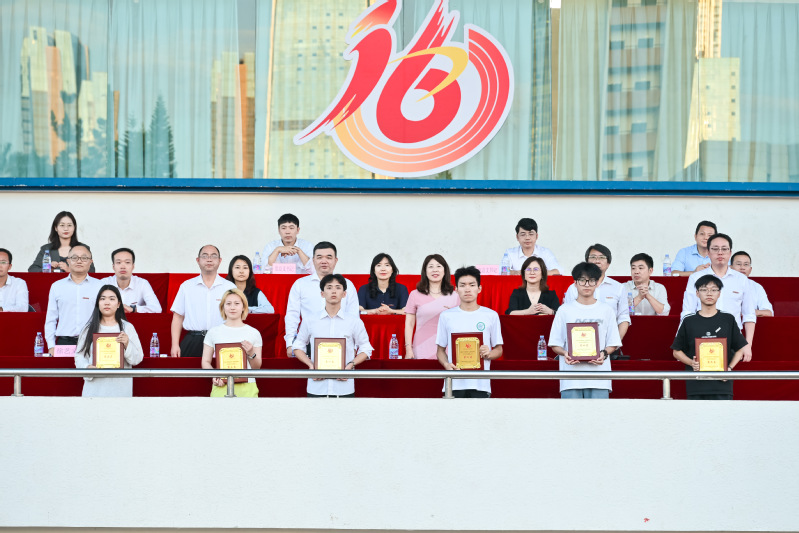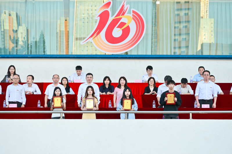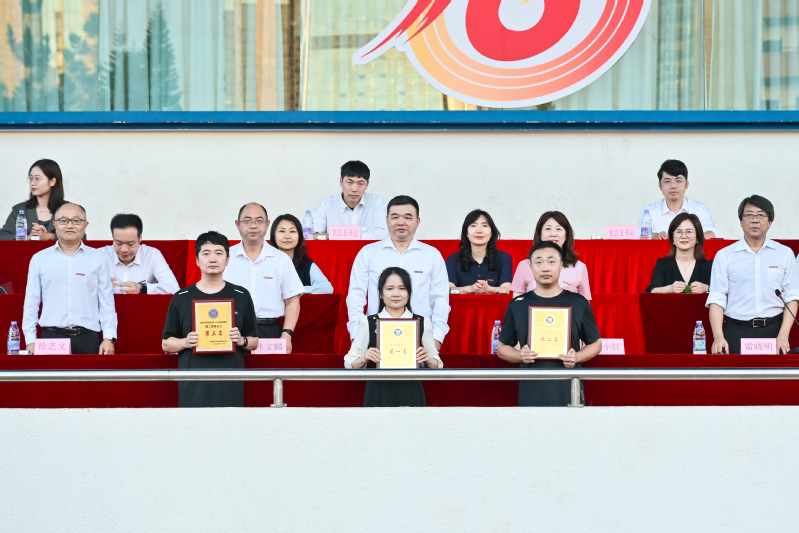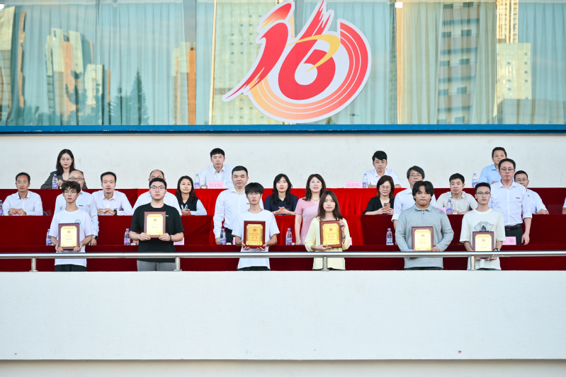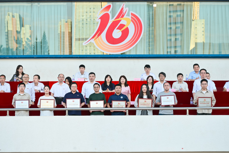 院党委副书记林文麟宣读第三届学生群体竞赛“弘毅杯”获奖名单及本届运动会“体育道德风尚奖”名单。计算机工程系夺得第三届学生群体竞赛“弘毅杯”第一名,经济管理系和电气工程系夺得第二名,土木工程系、传媒与设计系和机械工程系夺得第三名。计算机工程系、传媒与设计系、经济管理系、信息工程系、人文艺术系、外国语系、数据科学与统计系、土木工程系8个单位获得本届运动会“体育道德风尚奖”。随后,与会领导嘉宾为获奖单位颁奖。