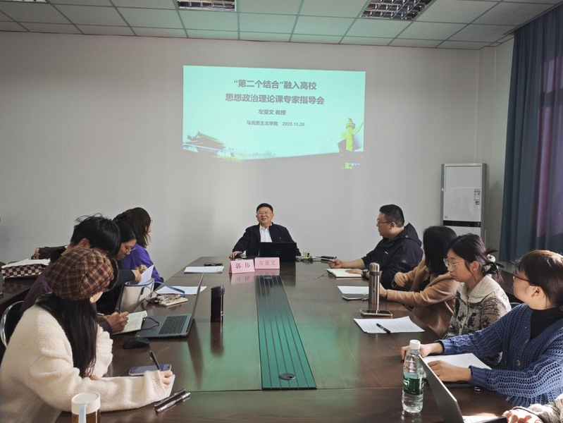 依托专家智库赋能教学与科研发展,聚焦教师能力提升精准发力,这是马院落实学院“十五五”规划,提升马院建设水准的重要举措之一。11月26日,马克思主义学院在机械北楼401主办“‘第二个结合’融入高校思想政治理论课”专家主题指导。教育部“马工程”专家、武汉大学文科二级教授左亚文教授应邀为学院教师科研能力提升提供专业指导与学术支持,作了精彩的主题指导讲座。本次活动由马克思主义学院院长郭伟主持,马克思主义学院全体教师共同参与了学习交流。