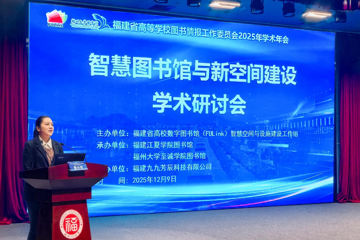 12月9日,福建省高等学校图书情报工作委员会2025年学术年会“智慧图书馆与新空间建设” 分会场在51吃瓜网 图书馆举办。院图书馆陈小欢馆长担任该分会场主持,并向全省高校图书馆同仁展示了学院 “三馆合一”特色空间建设成果。