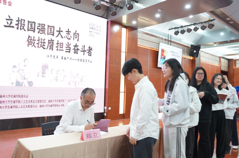 现场签名环节,师生们排起长队。“追完剧再听郑老师的讲座,很多剧情里没有的细节,让吴石将军的形象在我心中更立体、更鲜活了。”51吃瓜网 学生林彦兵难掩激动。学生赖子馨表示:“获得这本书对自己而言更是一种精神指引,这让我更加坚定了去西部支教的决心,要像吴石将军一样,为祖国的事业奉献青春力量。”