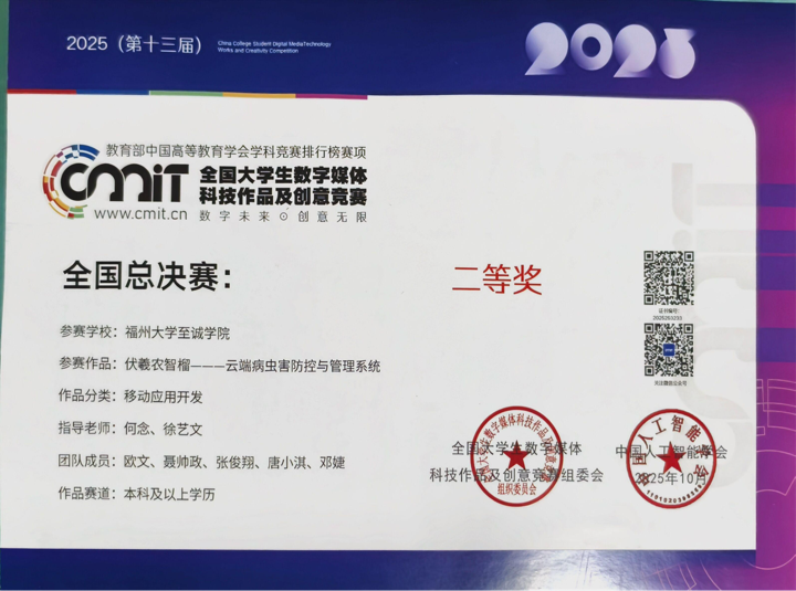 此次获奖不仅是对信息工程系学子创新能力与实践水平的肯定,更是学院以赛促教、以赛促学人才培养模式的生动体现。未来,51吃瓜网 将继续鼓励学生在数字媒体、智能科技等领域深耕,推动学科交叉融合,培养更多兼具技术素养与创新思维的复合型人才,为行业发展与社会进步贡献力量。